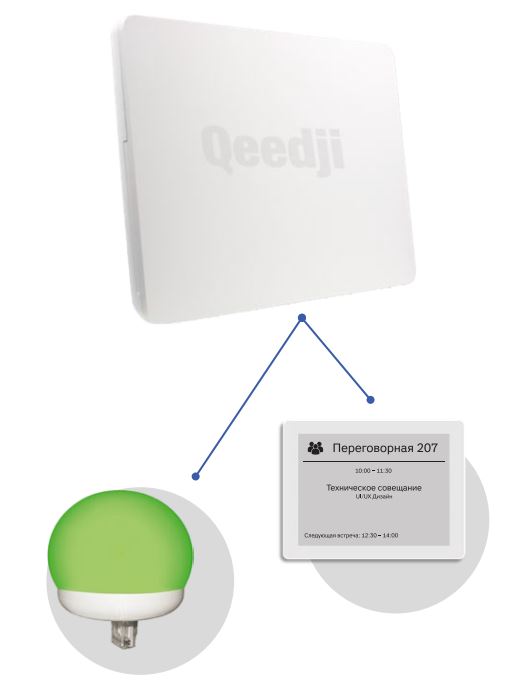 Устройство подходит для организации внешней системы идентификации кабинетов и пространств и системы бронирования. Каждый SMH300 поддерживает до 10-ти комплектов (6”+SBL10+датчик движения на EnOcean 2.4 GHz BLE ) или устройств.