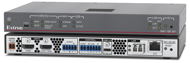 Extron NAV 10E 501 – это кодер с технологией Pro AV over IP, который передаёт видео, аудио, Ethernet и сигналы USB 2.0 высокого качества с очень низкой задержкой по сетям Ethernet 10 Гбит/с при низких скоростях. Используя запатентованный Extron кодек PURE3®, он обеспечивает передовую производительность за счёт передачи видео в реальном времени с разрешениями до 4K при 60 Гц и семплированием цвета 4:4:4 без видимых потерь и с очень низкой задержкой. Регулируемые параметры скорости передачи обеспечивают совместимость с кодерами и декодерами NAV® 1 Гбит/с, что даёт возможность расширения в крупных инсталляциях. Поддержка стандарта AES67 для передачи аудио по IP-сетям предоставляет гибкие возможности интеграции с аудиопроцессорами DMP Plus или другими аудиоустройствами с IP-интерфейсом. Разработанная с целью поддержки профессиональных AV‑систем с высокими требованиями, мощная платформа NAV с возможностью расширения обеспечивает защищённую трансляцию AV‑сигналов к тысячам кодеров и декодеров.