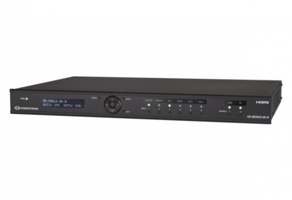 HD-MD6X2-4K-E от Crestron® представляет из себя простой в использовании коммутатор сигналов сверхвысокой четкости с шестью HDMI® входами и двумя HDMI выходами. Он поддерживает видео сигналы Full HD 1080p, Ultra HD, 2K и 4K с HDCP, 3D, Deep Color и звуком 7.1. Для полностью автоматической работы используется режим авто переключения, а ручное управление осуществляется через встроенные органы управления, Web браузер или систему управления Crestron. Упрощенная настройка производится через находящийся на передней панели OLED дисплей или Web браузер.