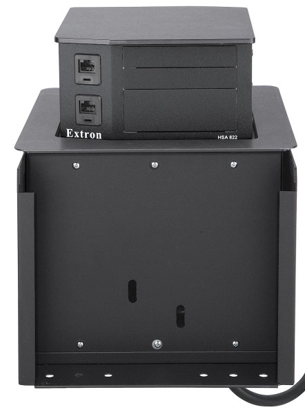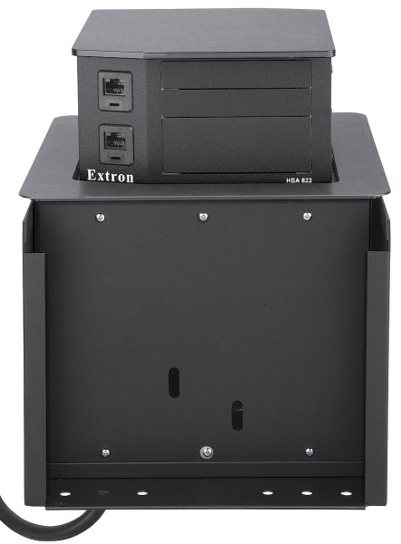 Extron Hideaway® HSA 822 - это двустороннее, вертикально поднимающееся архитектурное решение для незаметного компьютерного видеоинтерфейса и доступа к разъему. Корпус HSA 822 предназначен для удобного монтажа в столы, столы или другую мебель AV и осторожно смешать их с окружающей средой. Прочный и надежный корпус очень компактен, что обеспечивает быструю установку с минимальными усилиями. После установки HSA 822 подходит вплотную к настольному компьютеру, сохраняя разъемы вне поля зрения. Для доступа к разъемам пользователи нажимают на верхнюю часть корпуса. Нажатие вниз отпускает механическую защелку, и HSA 822 медленно поднимается с поверхности, представляя разъемы для использования.