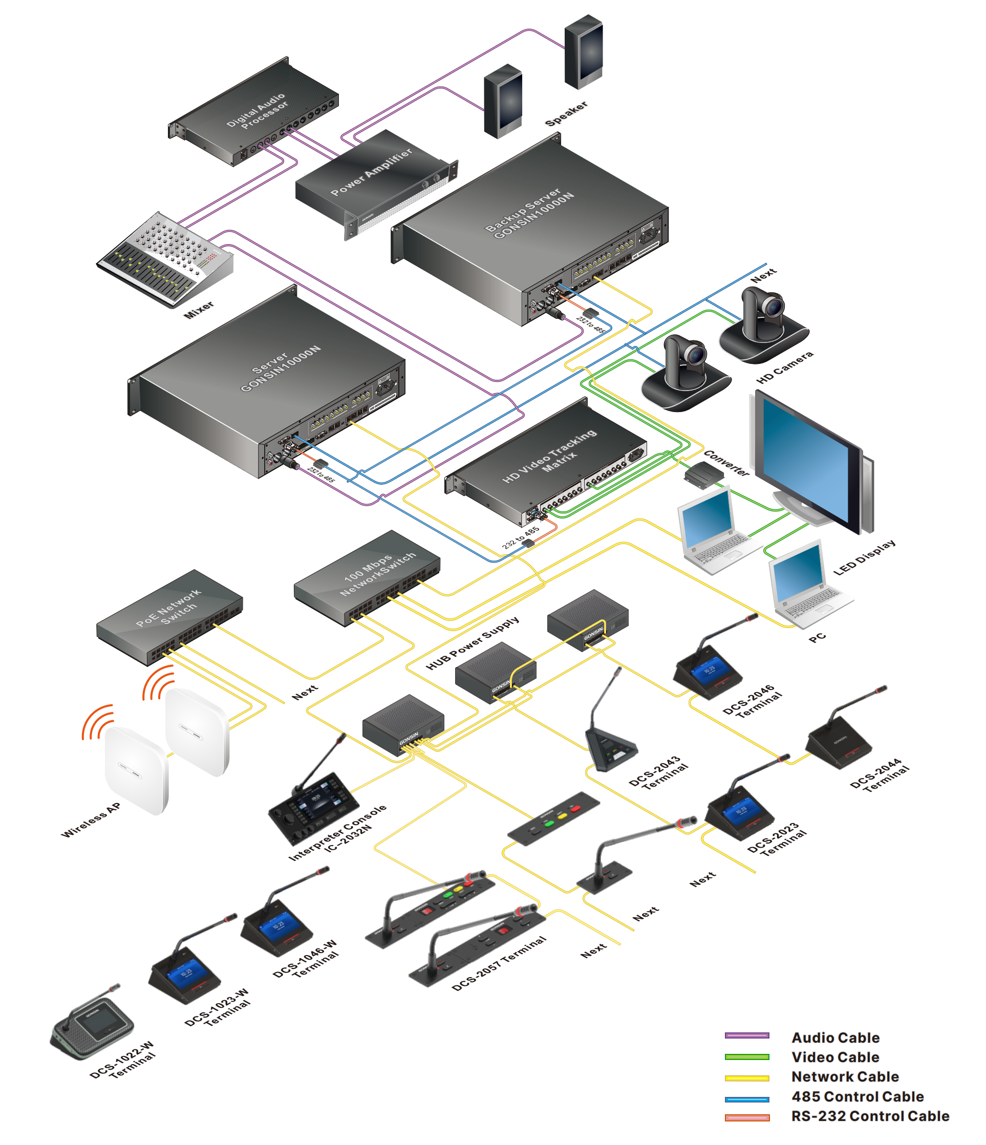 Цифровая проводная и беспроводная конференц-система Gonsin 10000N