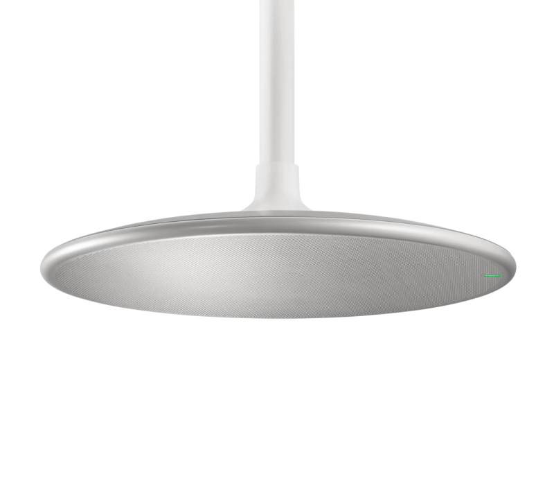 Круглый потолочный микрофонный массив, технология Automatic Coverage, многоцветный светодиод, выход кабеля в зависимости от крепления, разъем RJ45, серебристого цвета