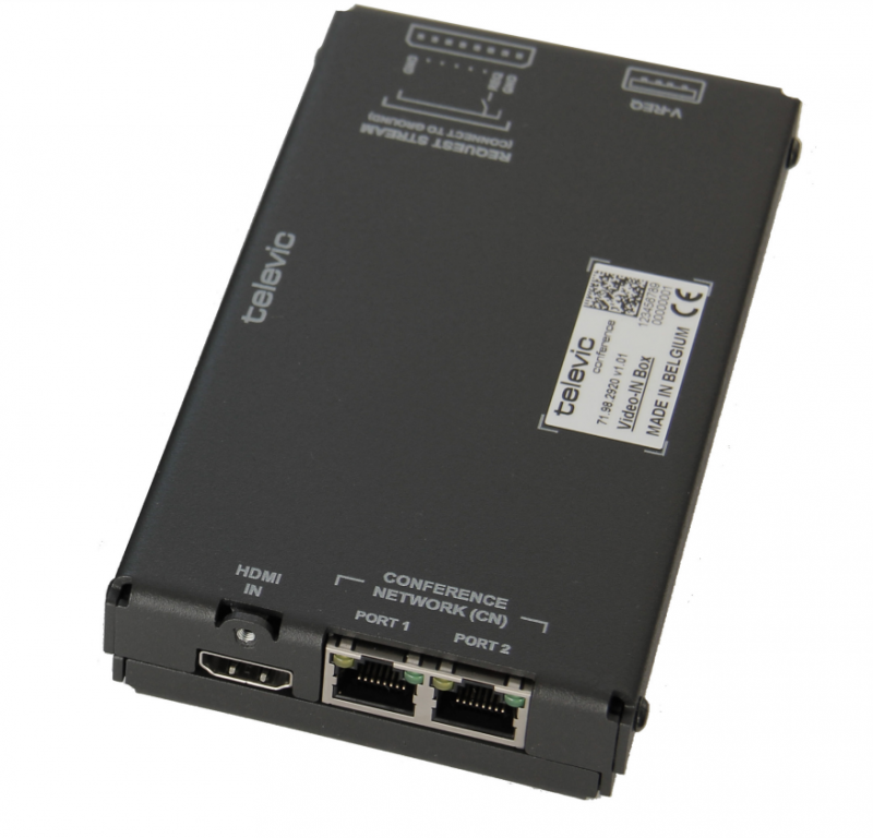 Блок Televic Plixus V-IN используется для подключения видео в любом месте вашей сети, с центральным блоком Plixus MME. Подключается к сети Plixus с помощью того же кабеля CAT 5e. Снимайте презентации, записывайте видео с камеры или видеоконференции и делайте их доступными для любого участника. Video-IN Box делает работу с видео очень простой.