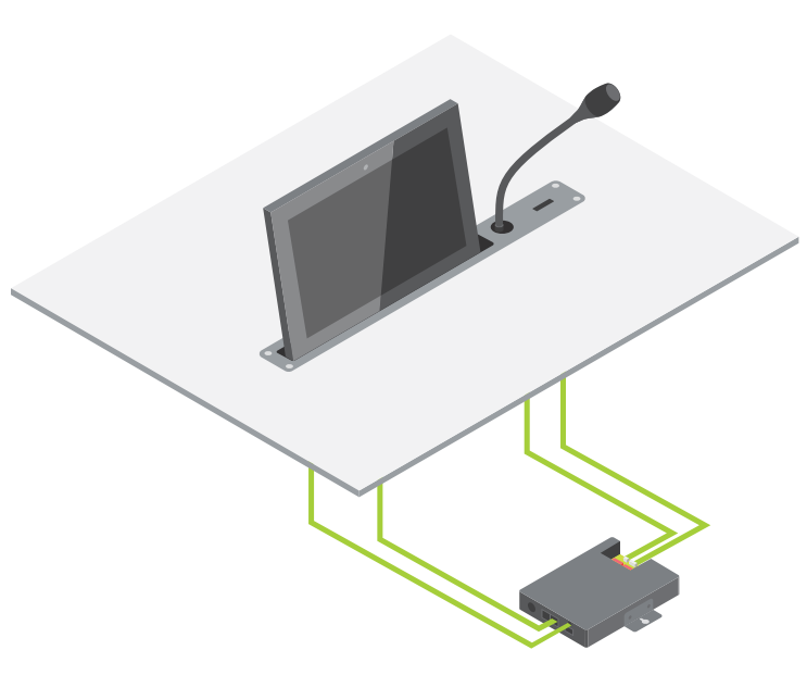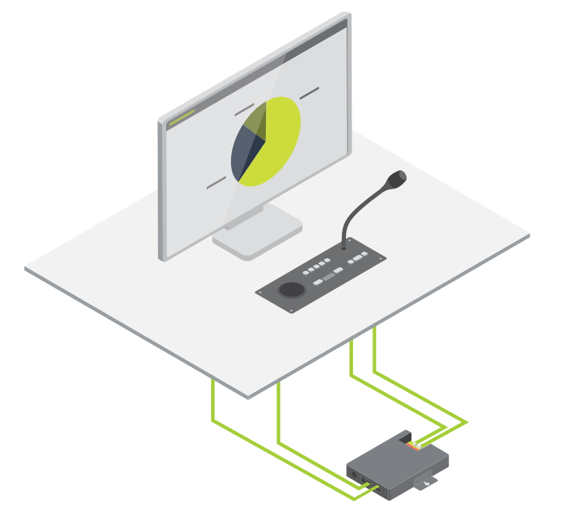Модули uniBOX поддерживают гибкую архитектуру Plixus - для их подключения к конференц-сети требуется только один стандартный кабель CAT 5e и кабель питания.