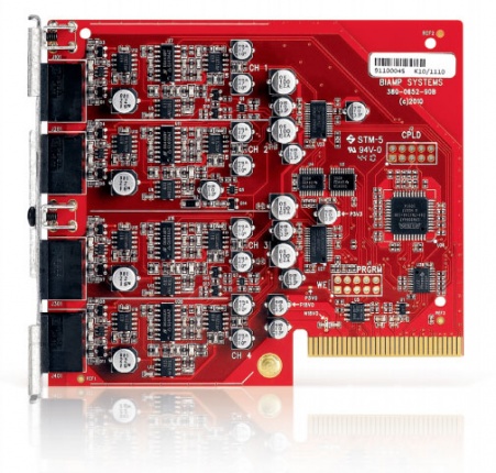 TESIRA SOC-4 производства Biamp — карта аналоговых выходов для установки в Tesira SERVER и SERVER-IO. Данная карта имеет 4 выхода с микрофонным/ линейным уровнем сигнала. Выходы симметричные и реализованы на клеммных разъемах. ПО Tesira позволяет регулировать уровень цифрового усиления сигнала, инвертировать и заглушать сигнал.