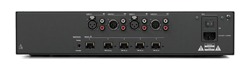 Звуковой процессор Bosch DCNM-APS2 обеспечивает направление, управление и обработку аудиосигналов и подает питание на мультимедийные устройства. Он содержит интеллектуальный адаптивный подавитель акустической обратной связи, эхоподавитель и два 5‑полосных параметрических эквалайзера для обеспечения оптимальной разборчивости речи. Кроме того, есть два аудиовхода для вставки внешних аналоговых аудиосигналов в систему, и также поддерживается настройка mix‑minus для подключения мультимедийной системы DCN к оборудованию (видео) конференц-связи. Эти два аудиовыхода используются для настройки mix‑minus и подключения к внешней системе усиления звука. Встроенный коммутатор Ethernet соединяет все устройства в системе в единую сеть и поддерживает сквозное подключение, которое позволяет подключить одно мультимедийное устройство к другому и даже последнему в цепи мультимедийному устройству для создания резервируемых кабельных соединений.