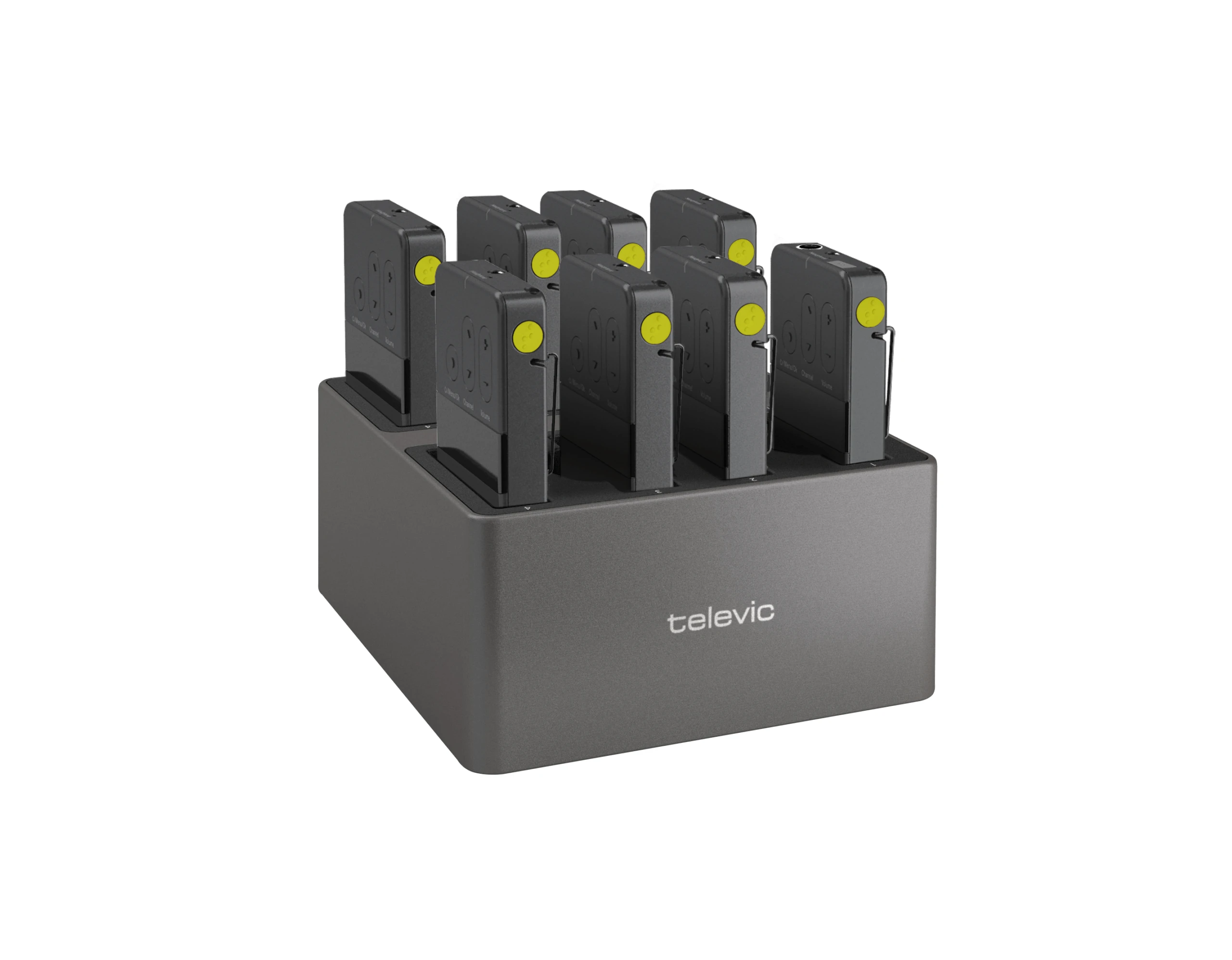 Настольное зарядное устройство Televic Unite CDD-8/4 cockpit — это многофункциональное устройство, предназначенное для зарядки аккумуляторов, встроенных в передатчики / приёмники системы Unite, а также для хранения и передачи информации для сопряжения устройств.