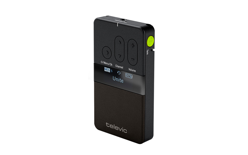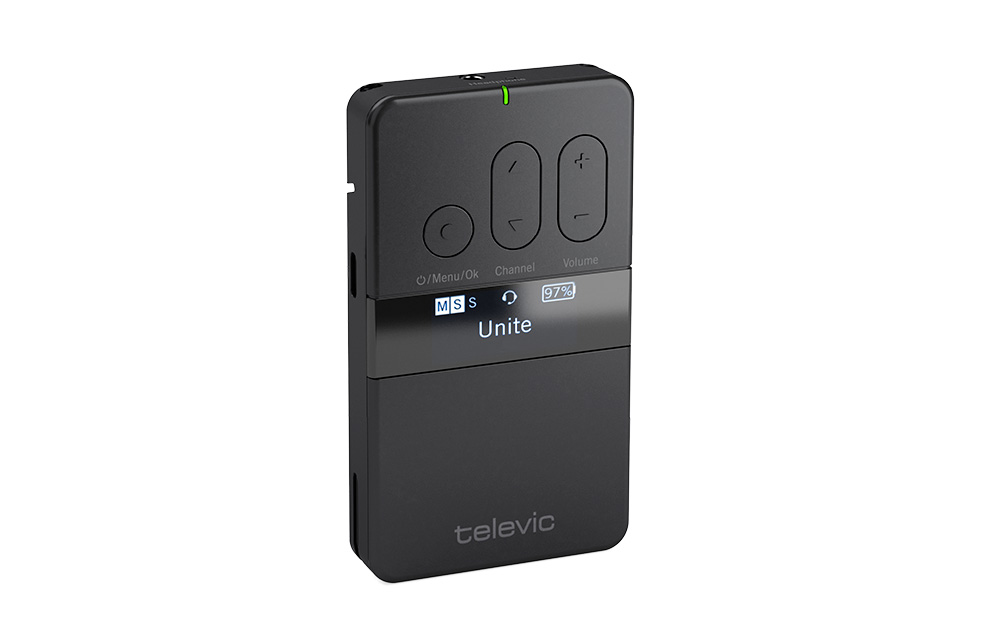 Компактный поясной приёмник Televic Unite RP идеально подходит для экскурсионного сопровождения. Также возможно использование в системах синхронного перевода и для помощи людям с нарушениями слуха. К мини-джеку (3,5 мм) расположенному на борту устройства можно подключить наушники или индукционную петлю для пользователей слуховых аппаратов. Версия Televic Unite RP-T дополнительно поддерживает подключение гарнитуры.