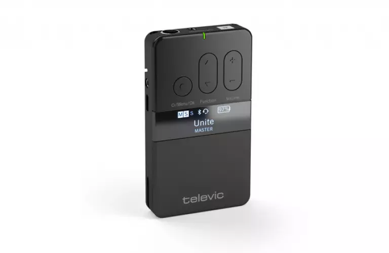Televic Unite TP (Артикул: 71.98.4010 (EU)) — это универсальный портативный передатчик, который может использоваться совместно с приёмниками Unite RP или RP-T в системах предназначенных для организации экскурсионного сопровождения, синхронного переводов, а также для людей с нарушением слуха. Может работать как беспроводная микрофонная система и поддерживает воспроизведение внешнего аудио по Bluetooth® и через линейный вход.
