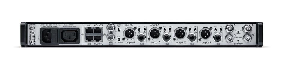 Четырёхканальный приёмник AD4Q - это новый стандарт спектральной эффективности. Революционные характеристики включают в себя широкий диапазон настройки, низкую задержку, режим высокой плотности каналов (HD) и новый режим Quadversity, обеспечивая надёжную работу в самых трудных РЧ-условиях. Сетевое управление, выходы AES3 + AES67 + Dante™ и различные опции маршрутизации сигналов предоставляют новый уровень менежджмента и гибкости вашего рабочего процесса.
