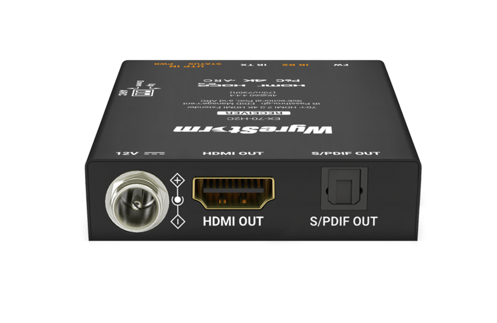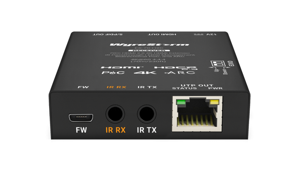 Передатчик (TX) оснащён HDMI OUT loop-out для подключения локального монитора предпросмотра. Устройство включает все необходимые профессиональные функции: двунаправленную сквозную передачу ИК (IR) для управления удалёнными устройствами, двунаправленное питание по кабелю (PoC) для гибкого подключения питания и поддержку обратного аудиоканала (ARC) с портом для вывода аудио S/PDIF (de-embedding).
