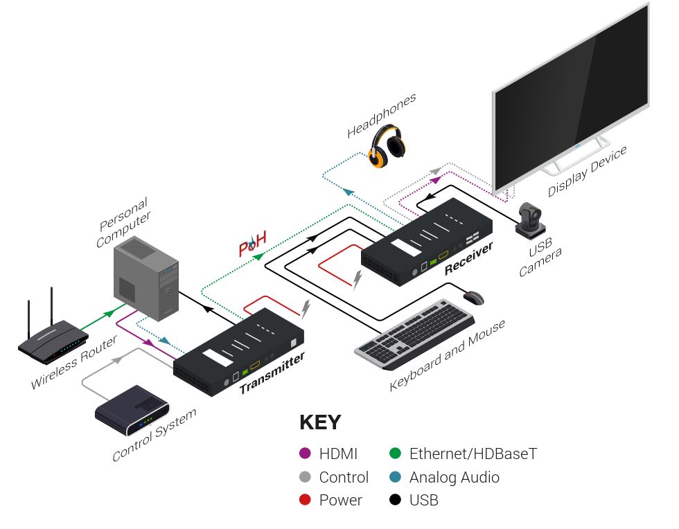 Стандартная функция большинства удлинителей WyreStorm: просто подайте питание на передатчик удлинителя, и приемник получит питание по соответствующему кабелю.