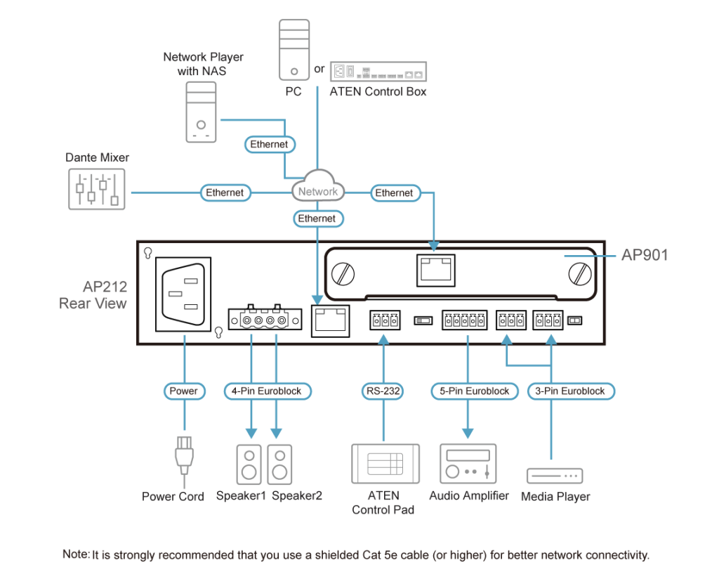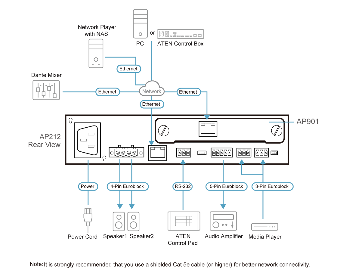 - Предназначена для использования с усилителями мощности серии AP DSP компании ATEN