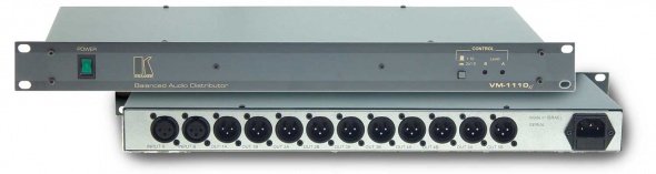 VM-1110xI — распределитель, усилитель звука (разъемы XLR). Имеет оптимальные технические характеристики, большую функциональную гибкость и более удобную панель управления, чем предыдущая модель VM-1110. Может работать как одиночный распределитель, усилитель моносигнала 1:10 либо как два раздельных распределитель, усилитель стереосигнала 1:5. Выбор режима осуществляется при помощи кнопок на передней панели. Каждый режим дает возможность формировать идентичные выходные сигналы для различных студийных и эфирных систем. Новейшие схемы усилительных каскадов Bi-Fet, а также буферный каскад на дискретных элементах позволяют отнести VM-1110xI к разряду первоклассных устройств. Благодаря активным схемам и отсутствию трансформаторов устройство является полностью прозрачным элементом на пути прохождения звука. VM-1110xI выполнено в надежном и прочном корпусе и может устанавливаться в стандартную 19” стойку (занимаемая высота — 1 U).