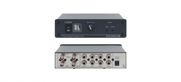 На передней панели расположены регуляторы уровня звука и видео, а также контроля АЧХ. Встроенный блок питания 12 В позволяет использовать устройство во внестудийных условиях. VM-30AVВ выполнен в прочных и компактных корпусах и устанавливается в стандартную 19” стойку при помощи адаптера RK-50RN (2 модуля, занимаемая высота – 1 U).