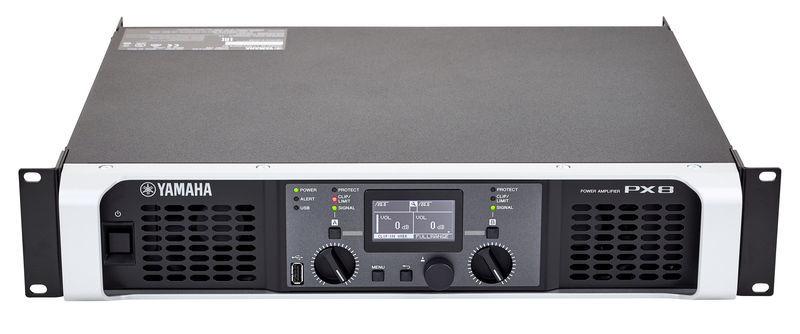 YAMAHA PX8 – многофункциональный усилитель мощности из линейки PX с широкими возможностями применения в системах звукоусиления разнообразных конфигураций. Модель оборудована современным эффективным усилителем класса D, высокая производительность которого получена благодаря использованию специально разработанного чипа LSI. Применяемая технология PLL позволяет контролировать характеристики передаваемого потока в реальном времени, за счет чего компании Yamaha удалось добиться впечатляющего качества звука и высокой мощности при компактных размерах и небольшом весе оборудования. При создании усилителей линейки серии PX используются самые современные технологии и тщательно подобранные электронные компоненты высокого качества. Усилитель отличается минимальным уровнем собственного шума, высокой надежностью. Он имеет совершенную систему защиты. Гибкость настроек обеспечивают встроенный эквалайзер, кроссовер, набор фильтров, delay, лимитер. Для быстрой настройки системы используется контрастный ЖК дисплей. Предусмотрена возможность сохранения восьми вариантов пользовательских настроек. Модель YAMAHA PX8 способна выдавать 2 х 800 Вт при 8 Ом и 2 х 1050 Вт при 4 Ом. Вес усилителя – 7,2 кг.