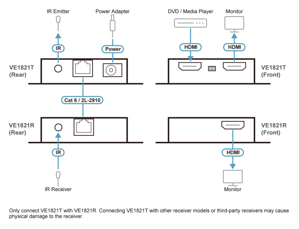 • 1x передатчик VE1821T 4K HDMI Cat 6