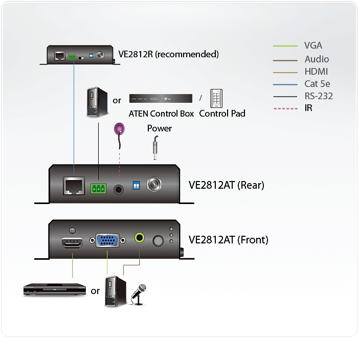 - Совместимые приемники - VE2812R, VE1812R, VE811R, VE814AR, VE801R, VE802R, VE601R, VE901R или будущие приемники компании ATEN с HDBaseT