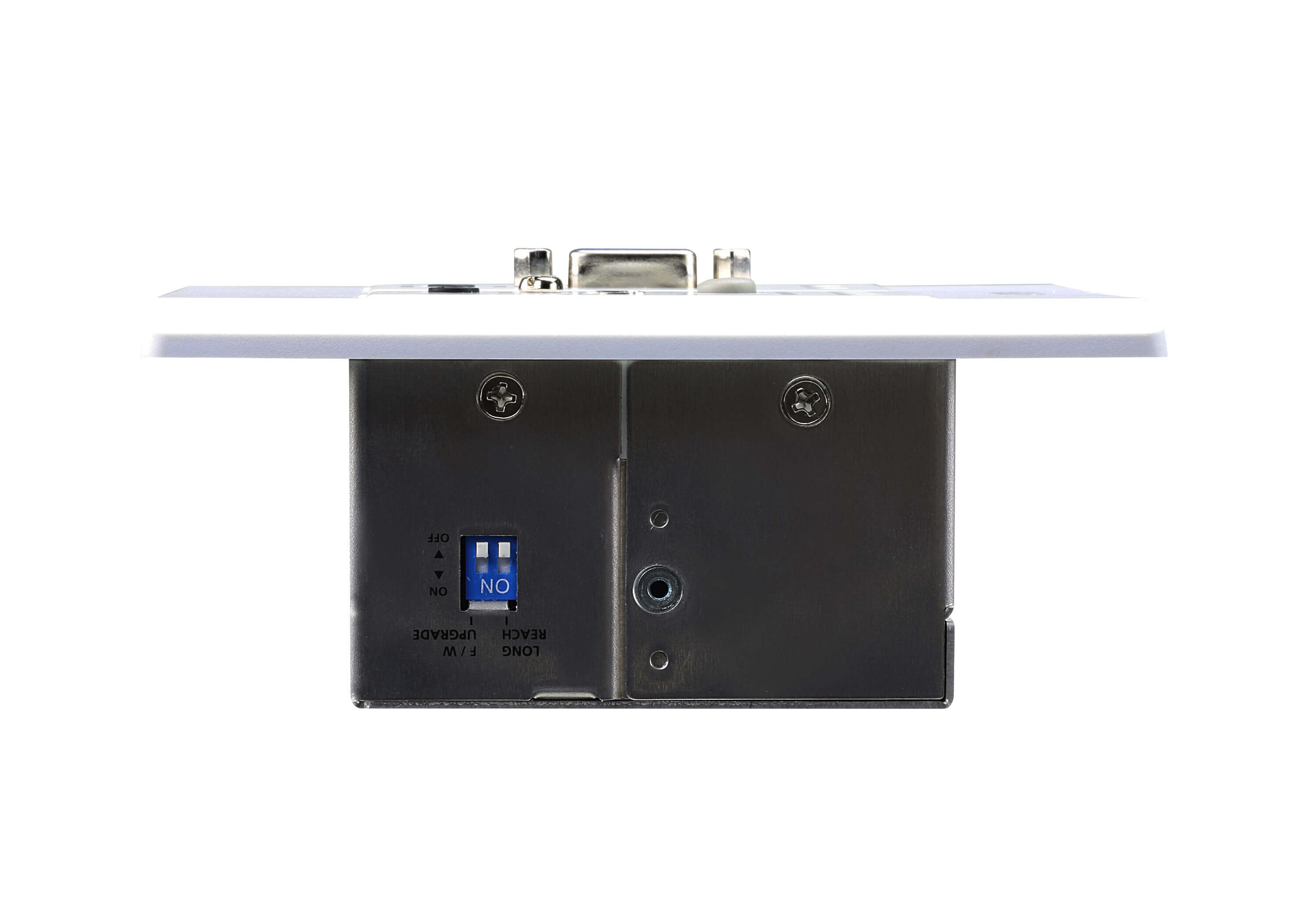 Модель VE2812AUST представляет собой настенный передатчик, устанавливаемый в двухсекционные распределительные коробки, способный передавать по одному кабелю 5e/6/6a на расстояние до 100 метров сигналы VGA (со звуком), HDMI, а также ИК и RS-232. При установке он сливается с опрятным и элегантным декором современных помещений для переговоров, залов заседаний, конференц-залов, учебных классов и аудиторий.