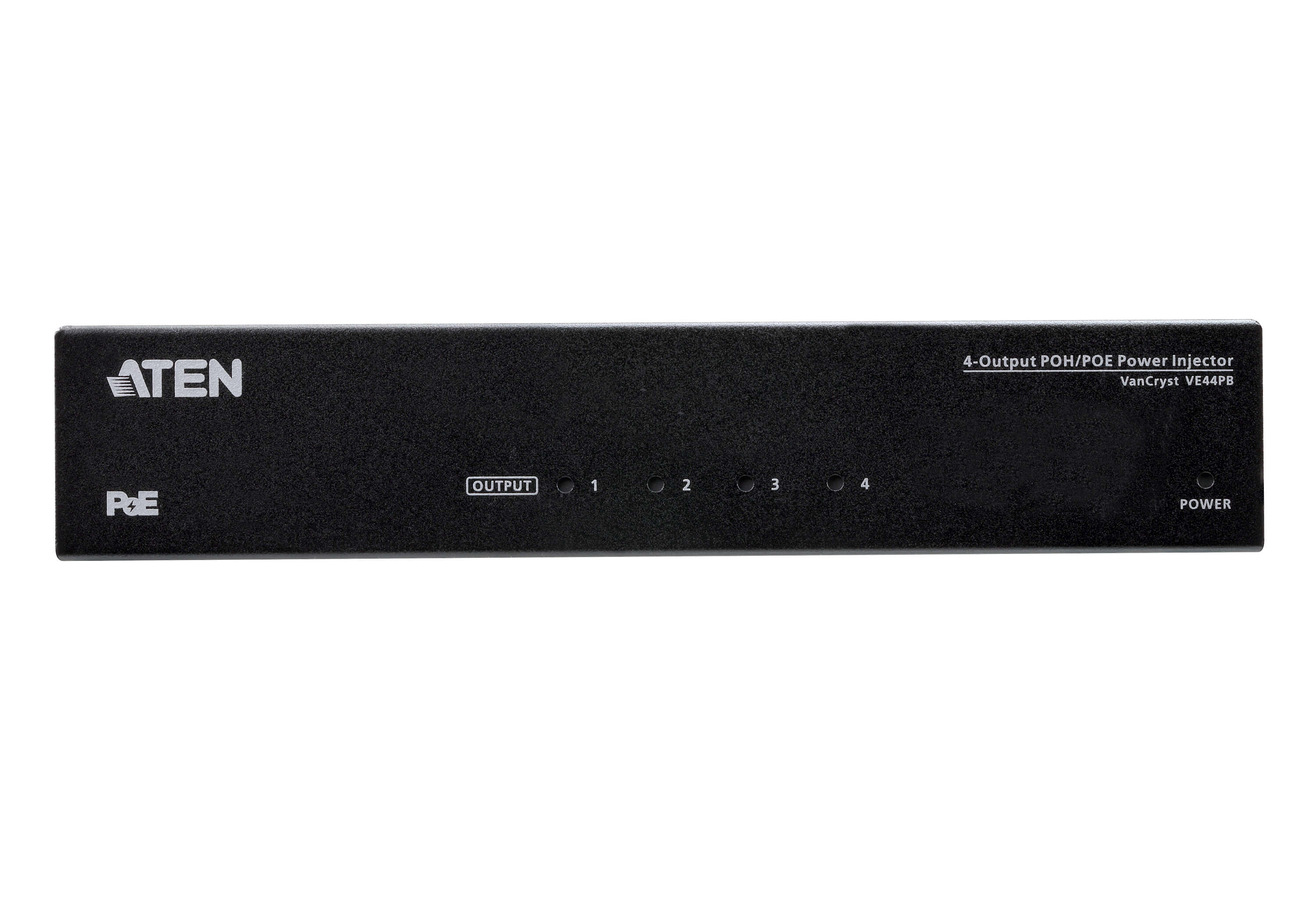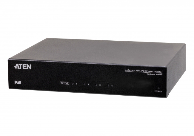 - Обеспечивает энергоснабжение по кабелям Cat 5e/6/6a до четырех совместимых продуктов ATEN, поддерживающих подачу питания по технологиям Power-over-HDBaseT (PoH) / Power-over-Ethernet (PoE)