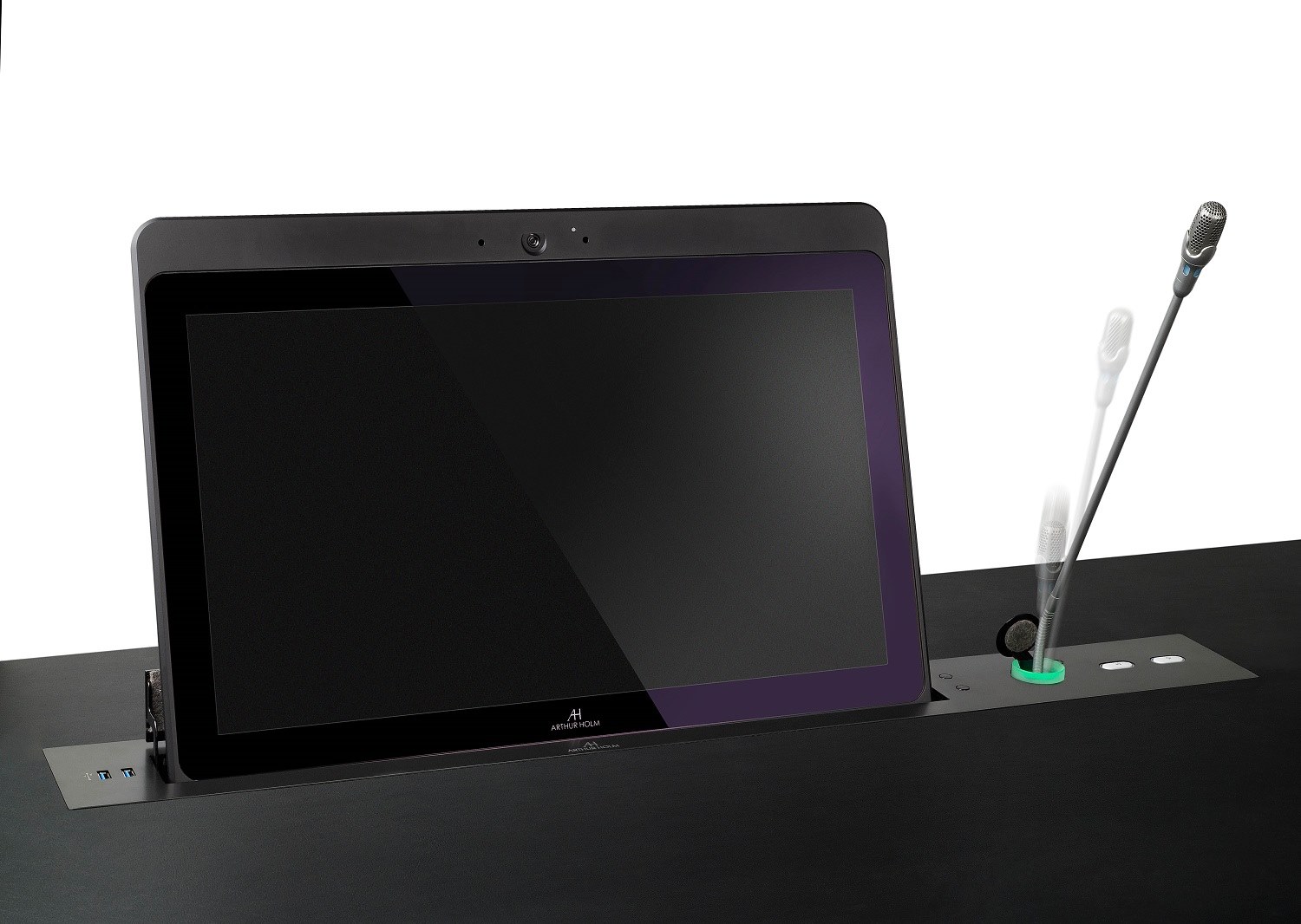 Надежные мониторы серии DynamicX2Talk производства Arthur Holm интегрированы с независимой лифтовой системой для микрофона типа "гусиная шея". Исключительно элегантный и строгий дизайн выдвижных мониторов DynamicX2Talk, где продумана каждая деталь, создан для наиболее требовательной публики для размещения в конференц-залах, кабинетах руководителей и общественных зонах.