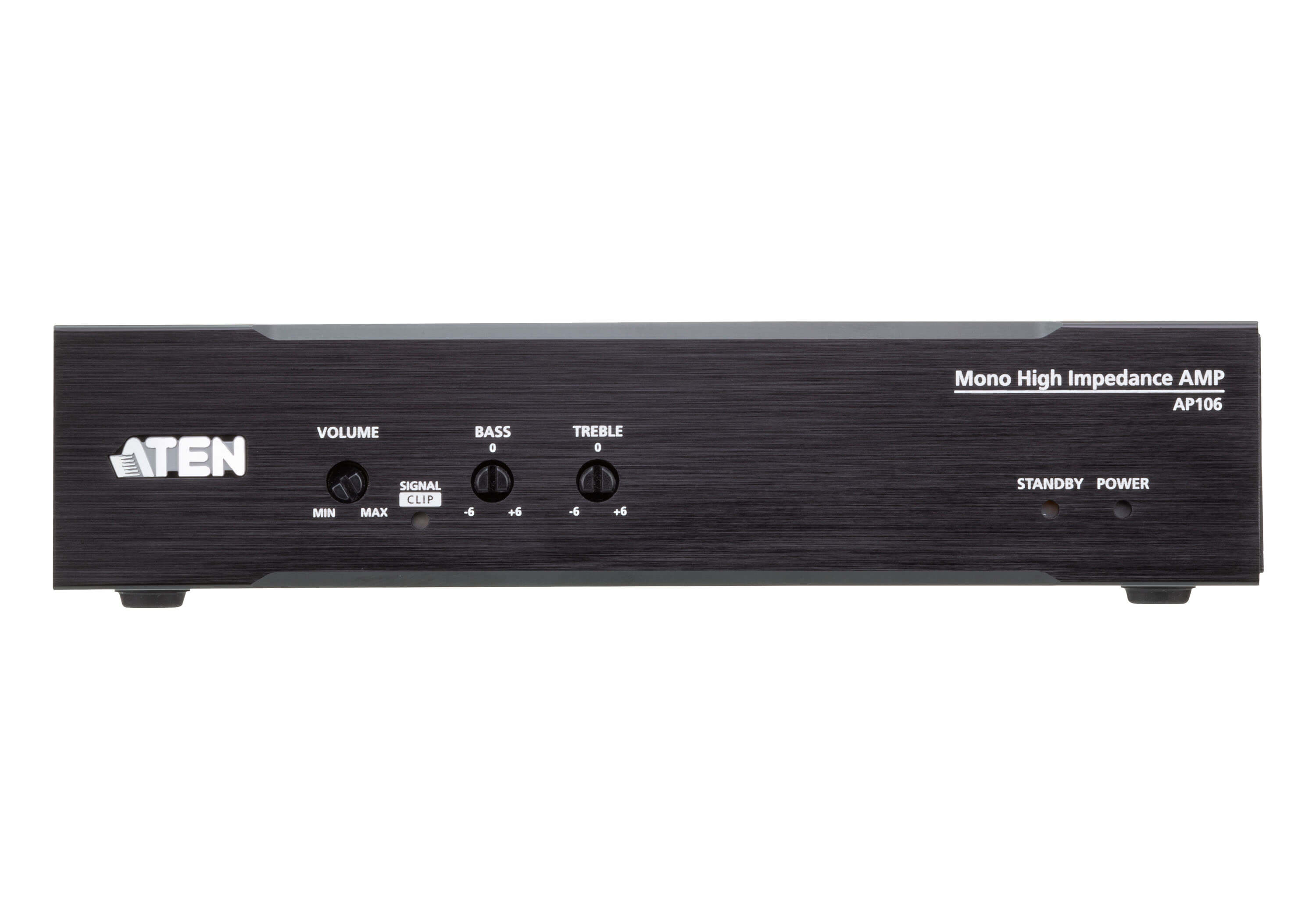 Усилитель звука модели AP106, обладает мощностью 60 Вт, оснащен высокоомным выходом и способен работать с аудиосистемами 70 В / 100 В. Поддержка балансных / небалансных линейных входов обеспечивает превосходное качество звука и предоставляет гибкость в установке. Помимо общей функции регулировки громкости в устройство встроен 2-полосный полочный эквалайзер. Он обеспечивает усиление/гашение высоких и низких частот в диапазоне ± 6 дБ, предлагая гибкую настройку тона и универсальность управления. Дополнительный запас мощности усилителя AP106 гарантирует передачу звука без искажений.