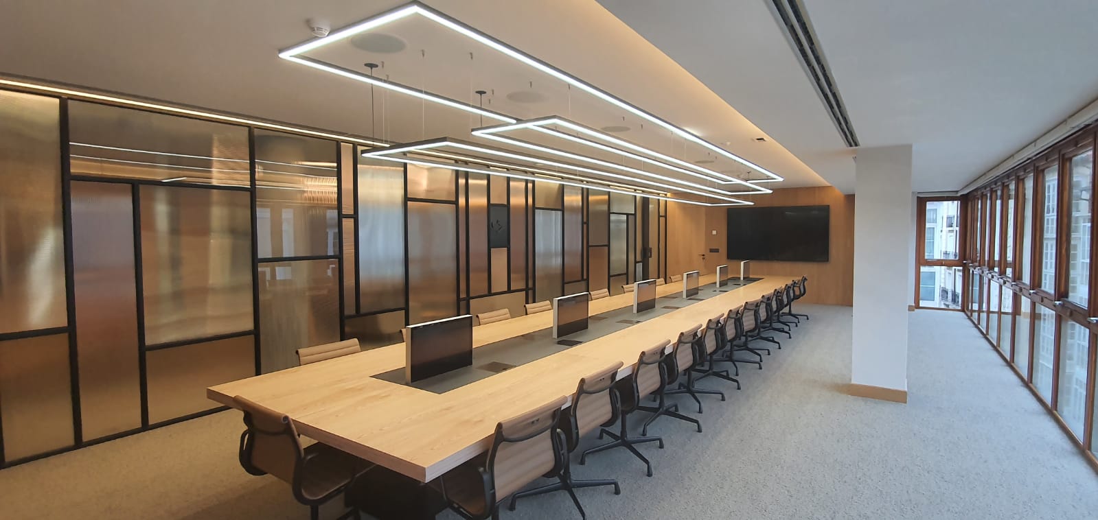 Монитор Arthur Holm DB1Twin – это вертикально выдвигающийся монитор с двумя экранами. Два монитора размещены вплотную друг к другу в компактной раме из анодированного алюминия. На мониторах может воспроизводиться контент различных форматов. Это удобно использовать для обеспечения двусторонней связи, например, на стойках регистрации, информационных стойках или за столами в конференц-залах с ограниченным пространством. DB1Twin появляется только при необходимости и исчезает внутри поверхности стола простым нажатием на кнопку. DB1Twin элегантен и красив, незаметно встраивается в поверхность стола в конференц-зале одним плавным бесшумным движением.
