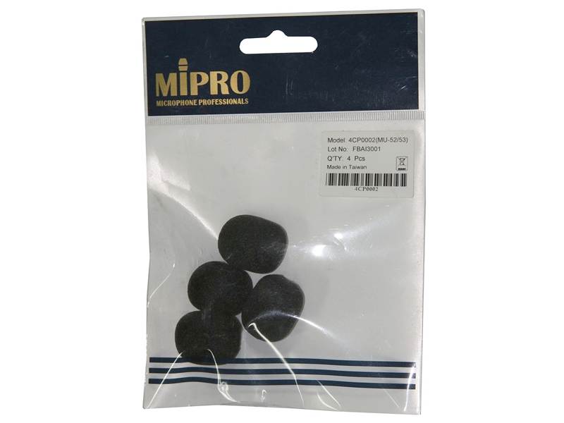 MiPRO 4CP0002 - поролоновая ветрозащита для петличных микрофонов MU-53XX, 4 шт., черного цвета.