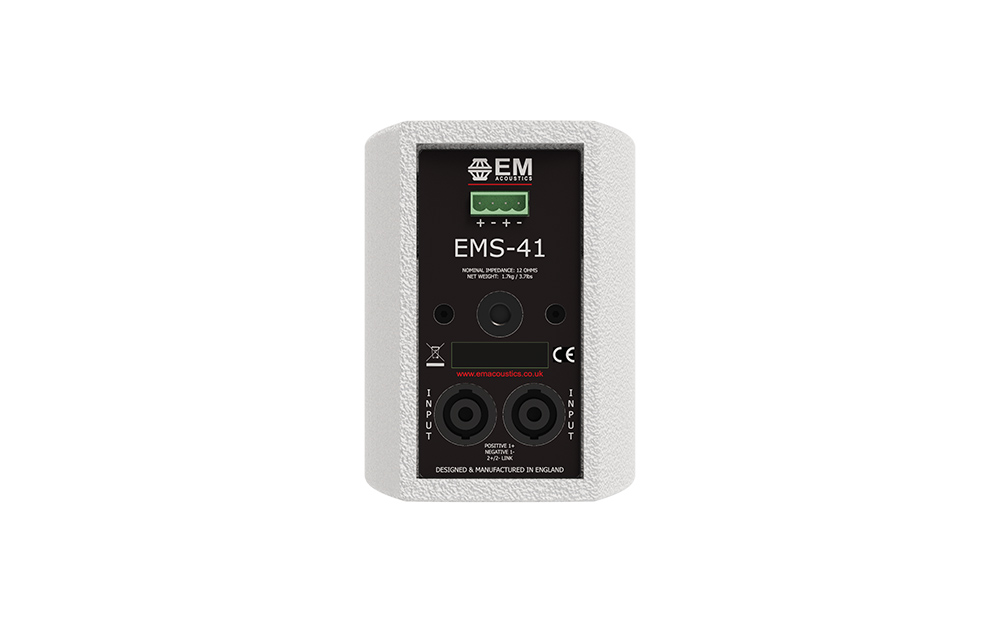 EMS-41 — это двухполосный пассивный коаксиальный громкоговоритель, оснащенный 4" (102 мм) НЧ излучателем и 0,85" (21,6 мм) ВЧ компрессионным драйвером. Закрытый корпус акустической системы имеет более плавный спад в области низких частот и как следствие – более широкий басовый диапазон, чем можно было бы ожидать от корпуса такого размера.