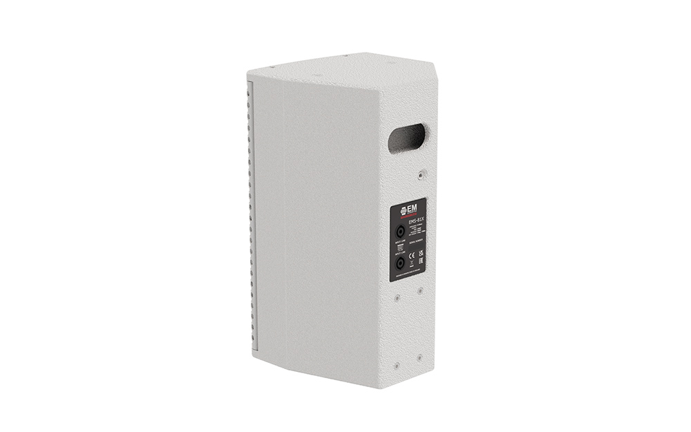 Акустическая система EMS-81X оснащена 8" (203 мм) НЧ-излучателем, соединенным через внутреннюю пассивную схему кроссовера с компрессионным ВЧ-драйвером с 1,7" (44 мм) диафрагмой/1" (25 мм) выходом. Волновод акустической системы обеспечивает дисперсию 90° x 60°, которую при необходимости можно развернуть – это позволяет использовать громкоговоритель как в горизонтальной, так и в вертикальной ориентации, а также в качестве компактного сценического монитора.