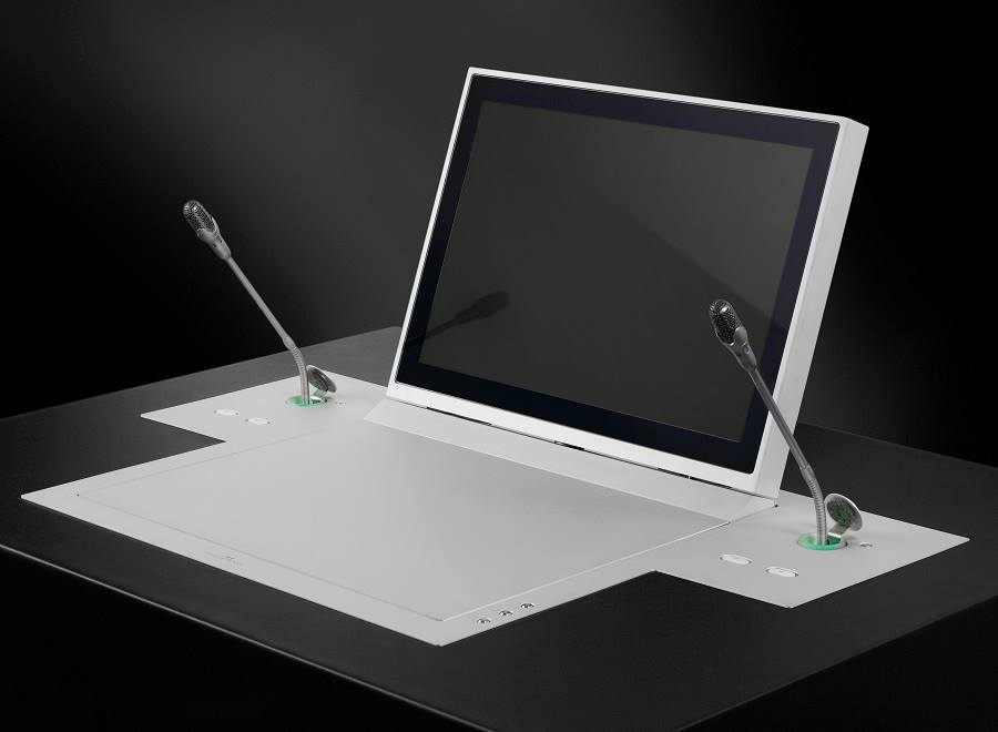 Обладая стильным дизайном и отличной функциональностью, выдвижные мониторы являются передовым инженерным решением и превосходно дополняют интерьер современного конференц-зала.