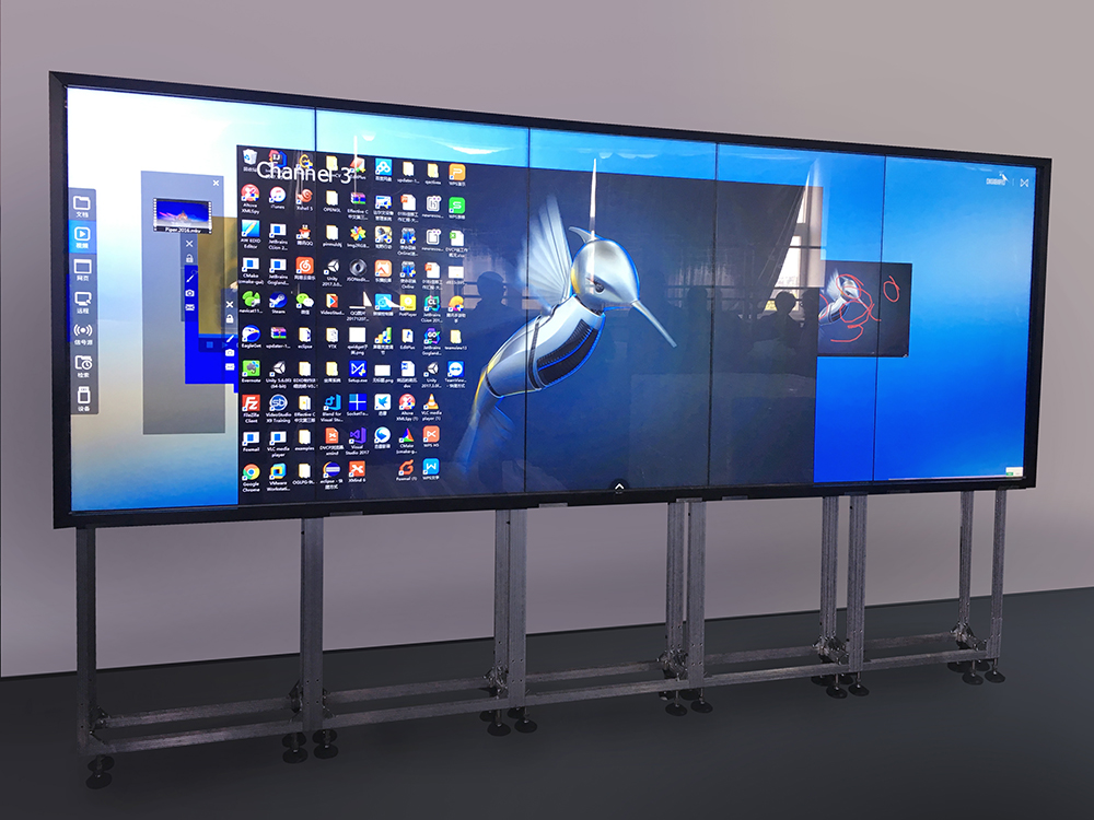 Бесшовный ЖК дисплей Full HD 55”, межпанельный шов 2,3/1,2 мм, 1920х1080 пикс., 700 кд/м2, 4000:1, LED подсветка, угол обзора 178 град., входы VGA, DVI, HDMI, CVBS; 200 Вт