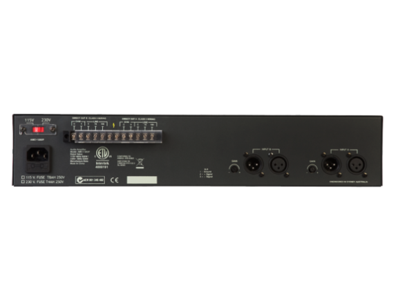 Усилитель мощности 2 x 120W, 100V, 70V, 4Ω выхода. 240VAC. 2RU.