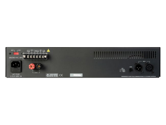 Усилитель мощности 120W, 100V, 70V, 4Ω & 8Ω выхода. 240VAC & 24VDC. 2RU.