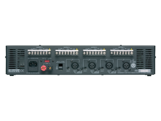 Усилитель мощности 4 x 80W, 100V, 70V & 4Ω выхода. 230VAC & 24VDC 2RU.