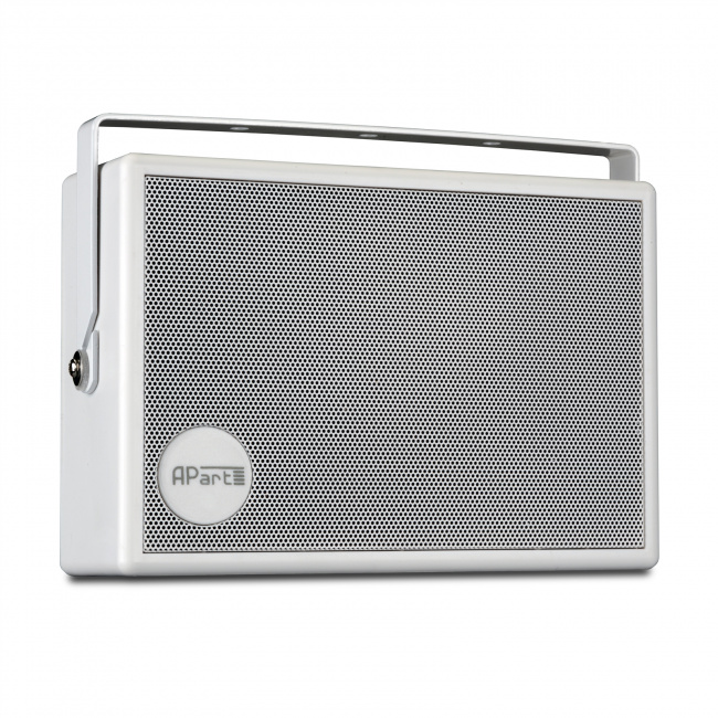 Apart SMB6-W — функциональный корпусной громкоговоритель с монтажным кронштейном. Он оснащен НЧ-головкой диаметром 5 дюймов с бумажным диффузором и трансформатором на номинальное напряжение 100 В с отводами для получения разной мощности (1,5, 3 и 6 Вт).