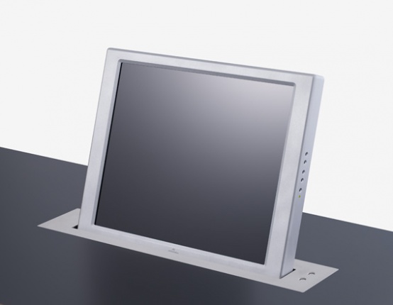 Лифт с электроприводом поднимает монитор с помощью кнопок на пластине люка, методом замыкания сухих контактов или команды внешней системы управления.