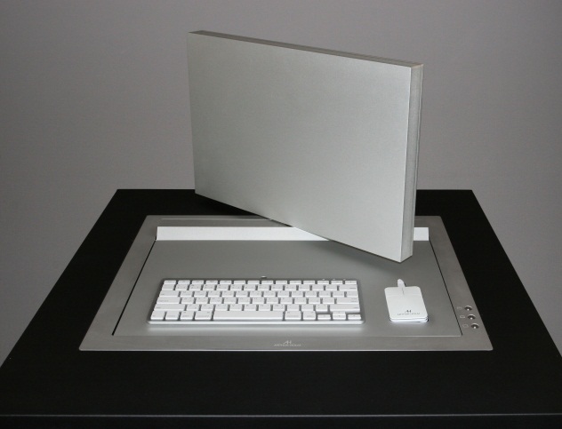 Уникальный электропривод автоматически поднимает и открывает экран монитора по аналогии с ноутбуком, с той особенностью, что экран может быть вручную развернут на 180 градусов. Монитор может быть вручную сложен в стол так, чтобы экран был расположен вверх или вниз. В последнем случае, задняя часть корпуса монитора может быть отделана декоративным материалом, например, кожей, деревом, для получения сплошной поверхности стола.