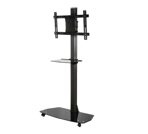 Стойка-тележка для одного до 50" ЖК-монитора, полка для оборудования, цвет - черное основание (закаленное стекло)/черная стойка