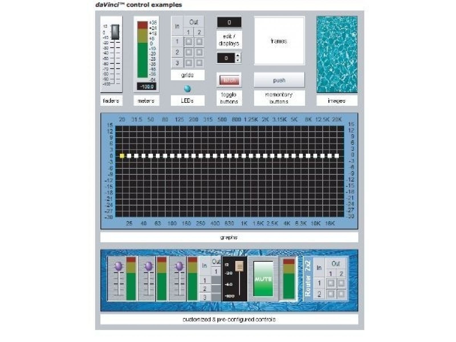 Nexia SP включает в себя широкий выбор аудио-компонентов, маршрутизации и обработки сигналов. Конфигурация системы цифровой обработки звука полностью определяется пользователем, либо вручную с помощью устанавливаемого на ПК программного обеспечения DaVinci™, либо через систему управления через порты RS-232. Также возможно использование дополнительных устройств дистанционного управления.