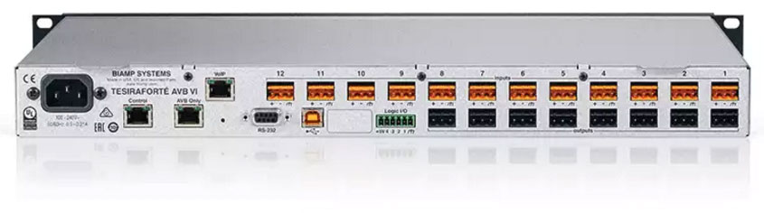 TesiraFORTE VI — это DSP-аудиоплатформа класса серверов с 12 аналоговыми входами и 8 аналоговыми выходами, которая оснащена технологией эхоподавления (AEC) Sona™ на всех 12 входах. Также имеет до 8 настраиваемых каналов для передачи звука по USB и 2-канальный интерфейс для IP-телефонии ( RJ-45). TesiraFORTE может напрямую взаимодействовать с устройствами через порт USB, а также использовать все преимущества самых современных решений для проведения конференций.