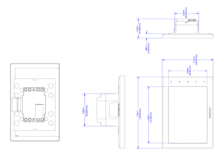 TSW-750 легко монтируется в 2-х или 3-постовый американский или 2-постовый европейский подрозетник, при помощи входящего в комплект кронштейна. Данный кронштейн так же может быть прикреплен к гипсокартону или другой поверхности, имеющей соответствующий вырез (60мм по высоте, 86мм по ширине). Будучи смонтированной, сенсорная панель выступает от поверхности всего на 13мм (1/2 дюйма) и удерживается на кронштейне с помощью магнитов, закрывая собой все монтажные винты и являя собой неповторимый вид.[5]