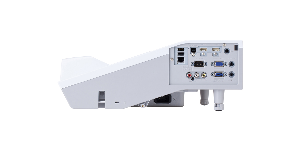 Трехчиповый 3LCD-проектор 2700 лм, WXGA 1280 x 800, 16:10, одна лампа, 5000:1, сверхкороткофокусный объектив. Разъемы: HDMI x 2, Composite Video, Component Video, 3.5 mm stereo mini jack x 2, RCA jack (L/R) x 1, USB. Вес 4.5кг. Белого цвета
