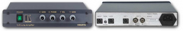 Kramer VM-9YC – распределитель, усилитель сигналов S-video 1:2, который позволяет компенсировать ухудшение харак-теристик сигнала при передаче по протяженным кабельным линиям.