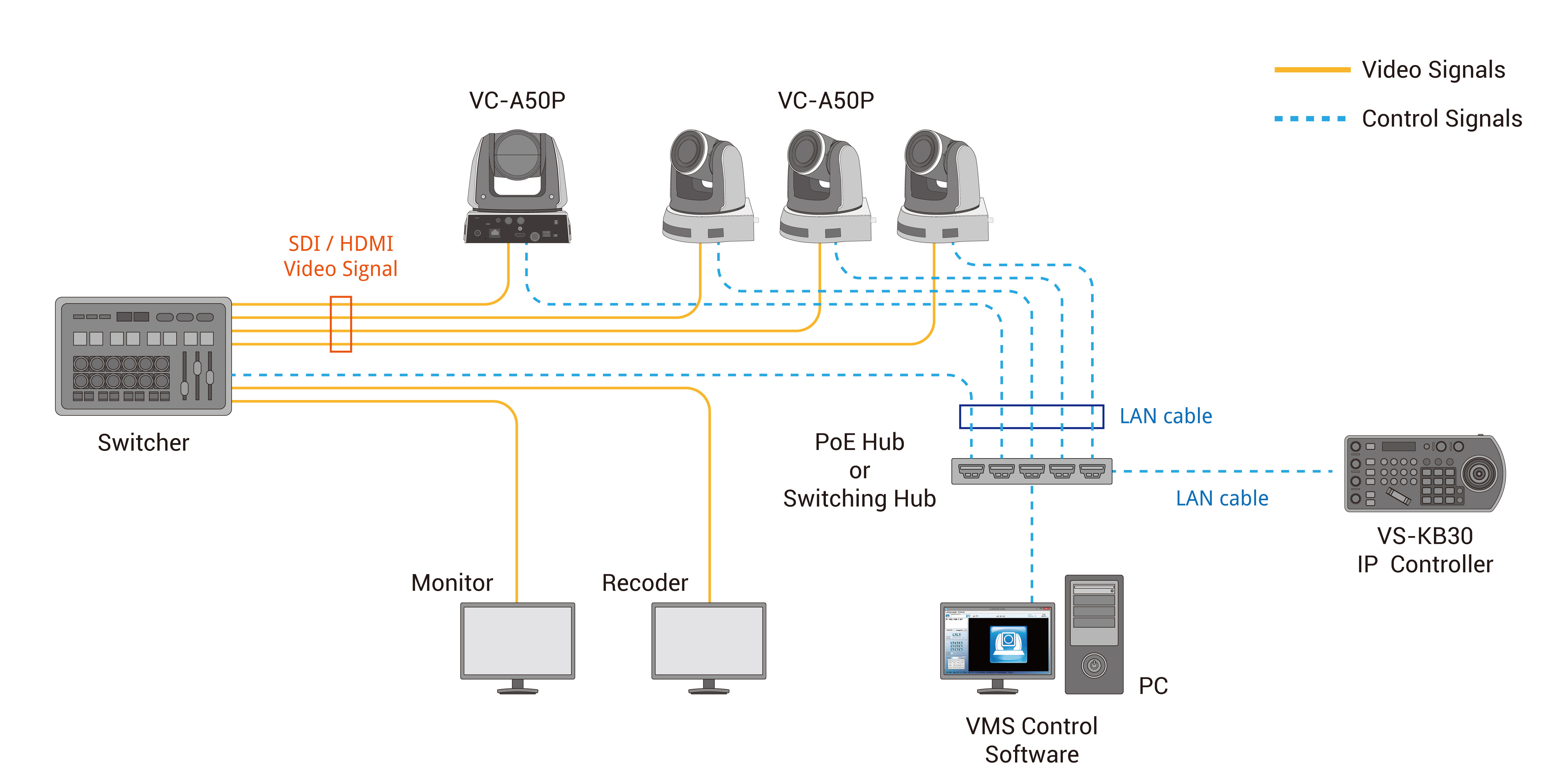 С помощью контроллера VS-KB30 Вы можете одновременно управлять 255-ю камерами по сети Ethernet.