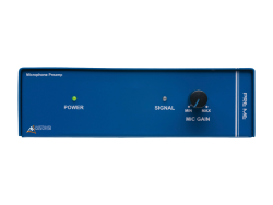 Микрофонный предусилитель. Двойной RCA и балансный XLR вход, переключение между микрофонными / линейными уровнями. Предложения +40 VDC фантомного питания, переключаемый фильтр высоких частот и балансный выход XLR. Передняя панель регулировки усиления
