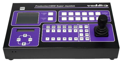 Vaddio ProductionVIEW FX - это уникальная система управления камерами со встроенным джойстиком, имеет шесть дискретных входов с автоматической настройкой. Каждой подключенной камере можно установить до 12 предпозиций и произвести индивидуальную настройку яркости, компенсации подсветки и баланса белого. Система имеет шесть контрольный входов для управления внешними устройствами: видеокоммутаторами, сигнальными огнями в студии (tally lights). Имеет встроенный 4’ монитор для предпросмотра.