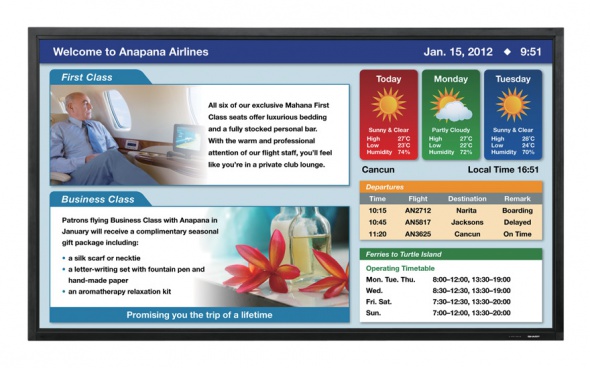 Возможно построение видеостены из нескольких мониторов. Специально разработан тонкий дизайн панели (толщина 123 мм). Выдающиеся качества изображения и большой размер экрана делают информационные дисплеи Sharp профессиональной серии PN-E идеальным решением для приложений, где данные визуализации, качества изображения, детализация и энергоэффективность имеют решающее значение.