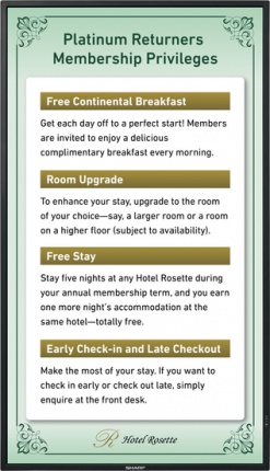 Компания Sharp выпустила новую серию прочных и простых в использовании профессиональных мониторов, которые идеально подходят для применения в различных областях: магазинах розничной торговли, гостиницах, приемных, вестибюлях и прочих корпоративных и общественных помещениях. Новая модель PNY475 47” (119.3 см) рассчитана на длительную беспрерывную эксплуатацию и оснащена встроенным USB медиа-проигрывателем — а это значит, что дополнительное аппаратное или программное обеспечение просто не нужно. Ваши изображения и видео воспроизводятся «на раз-два-три». Как чрезвычайно простое в использовании решение, гарантирующее превосходное качество изображения и звука, PN-Y475 устанавливает новые стандарты в области простых и надежных цифровых систем визуального оповещения, подходящих для применения в любое время и в любом месте.