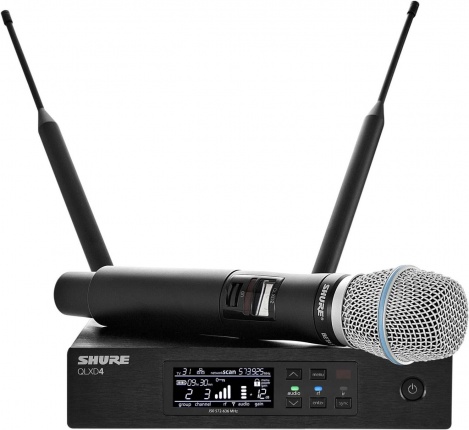 Беспроводная микрофонная система содержит ручной микрофонный передатчик QLXD2 с микрофонной головкой Beta87A и приемником QLXD4, G51 470 - 534 МГц